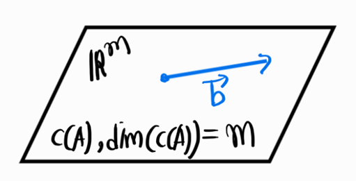 b의 경우 \(b \in \mathbb{R}^{m \times 1}\)이기에 열공간에 속하는 벡터이다. 그러므로 full row rank인 경우는 반드시 해가 존재한다.