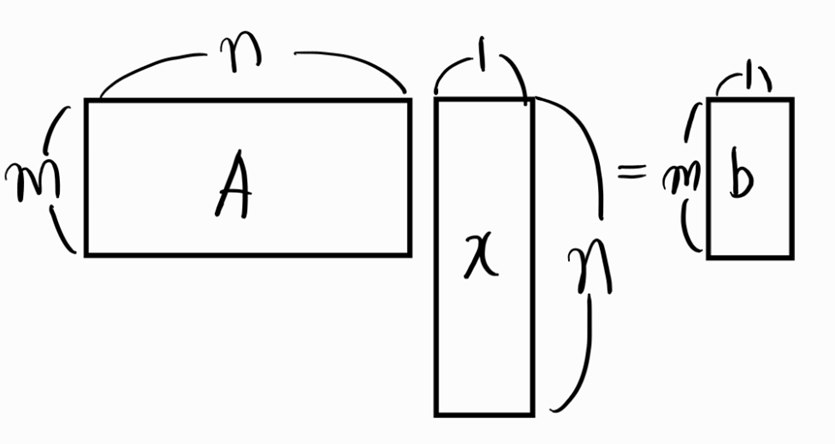 문제 : \(A \in \mathbb{R}^{m \times m},\text{rank}(A) = m\,,x = \in \mathbb{R}^{n \times 1}\,,b\in \mathbb{R}^{m \times 1}\) 일때, \(Ax = b\)를 만족하는 x의 갯수는?