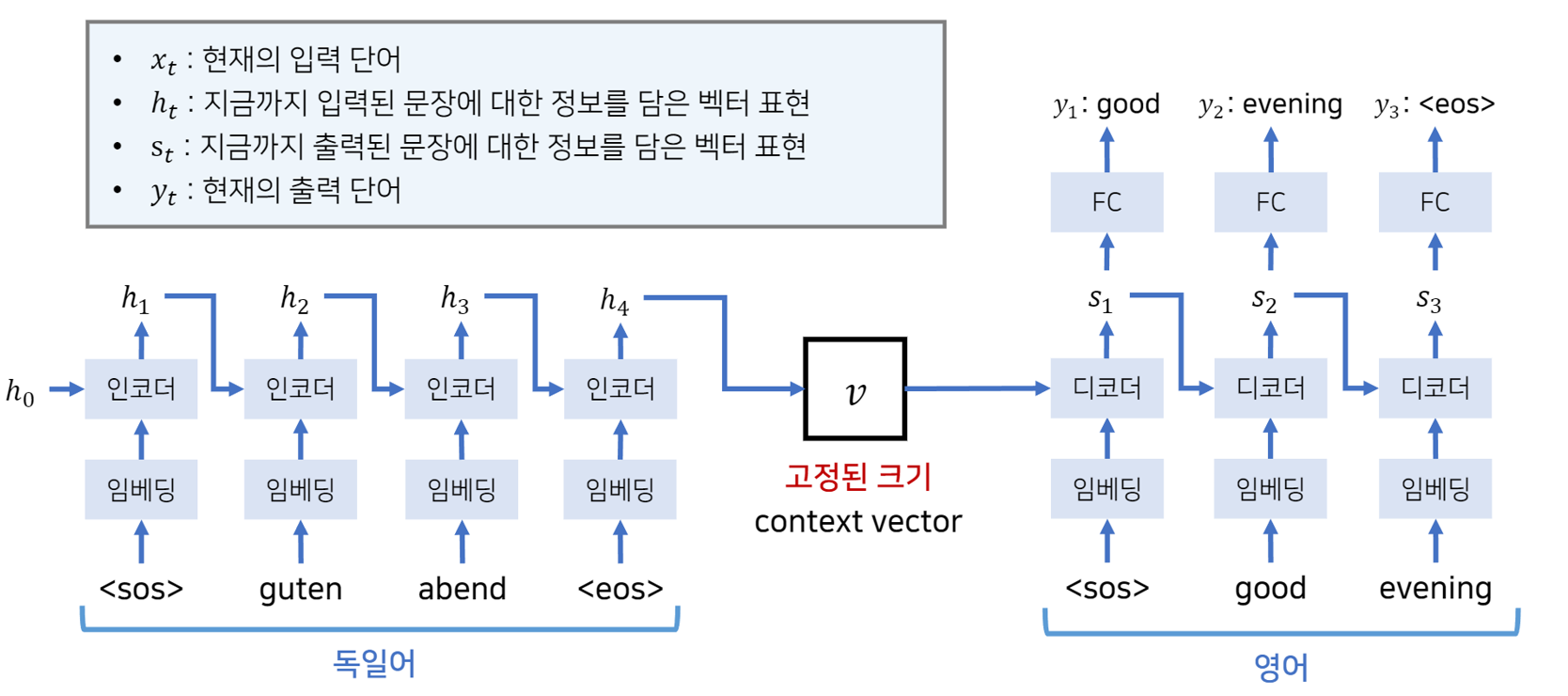 - ๊ธฐ์กด์ RNN๊ธฐ๋ฐ์ seq2seq๋ชจ๋ธ์