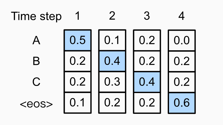 - Greedy Algorithm은 각 t마다 conditional distribution을 maximize하는 토큰만 outputsequence로 출력합니다.