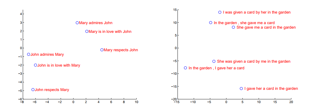 - 비슷한 의미의 문장은 가깝고 다른 의미의 문장은 거리가 멀더라 => LSTM기반의 네트워크가 의미를 잘 포착함을 알 수 있습니다.