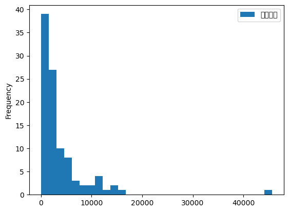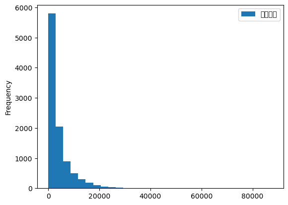 - 오른쪽으로 꼬리가 긴 분포.(오른쪽으로 치우친 분포)