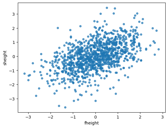 - fheight와 sheight는 어느정도 강한 양의 선형관계를 가진다.
