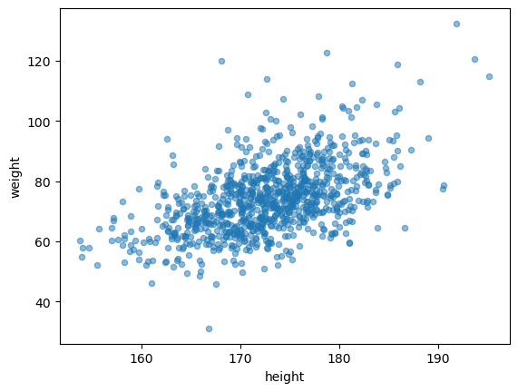 - height,weight사이의 상관계수 \(r = 0.52\)정도로 어느정도 강한 양의 상관관계가 있다.