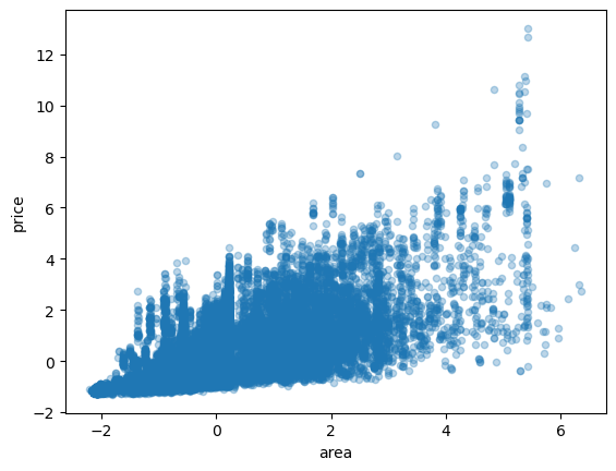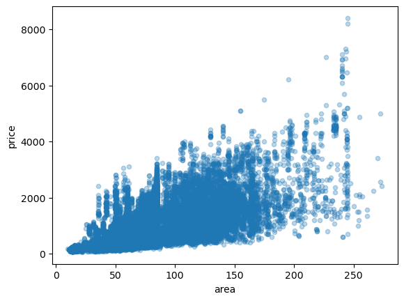 - 다음예제에서 아파트 면적과 가격사이의 관계를 살펴보자